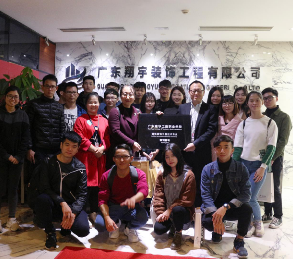 为深化校企合作互动交流,促进学生校外实习工作平稳有序开展,2017年12月12日,建筑装饰工程技术专业姜艳华老师带学生参观校外实训基地珠江新城广东翔宇装饰有限公司,通过现场由项目负责人跟大家介绍工作岗位数量、职责要求,了解该单位过往我校建筑装饰工程技术专业学生工作和实习情况,让2015级学生了解该公司情况、投递简历、顺便探访已经在这里实习的同学,并让往届已在该公司就职的师兄进行了介绍答疑打消大家工作畏难情绪。