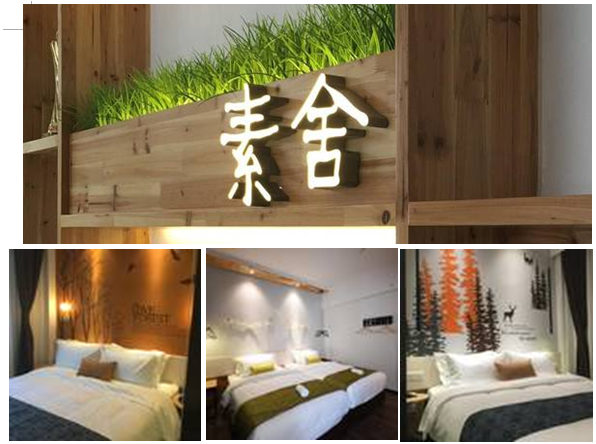 面试的时候地点安排在公司的自营项目“素舍”酒店。是由我们公司自己设计、改造、营运的一个项目。师兄带我们参观了酒店,给我们讲解素舍的设计理念以质朴及抚慰心灵的简洁元素, 秉持‘精致不粗、简约不俗、舒适不累’的设计理念,将“韵致舍居”和“现代商务”融为一体,以高雅温馨却不失简约内敛的设计风格,将人文与自然完美融合。 素舍酒店品牌创意和WILLIS(韦利斯)低调的浪漫时尚是相辅相成的。选取的设计元素都是与大自然相关的,杉木板,水泥清漆,壁纸,树枝挂饰等都是简单又不昂贵的装饰材料,放在一起的感觉的清新脱俗,能够让旅客身心得到放松和愉悦。素舍里面的树枝挂饰,挂画等都是员工们一起DIY制作的。