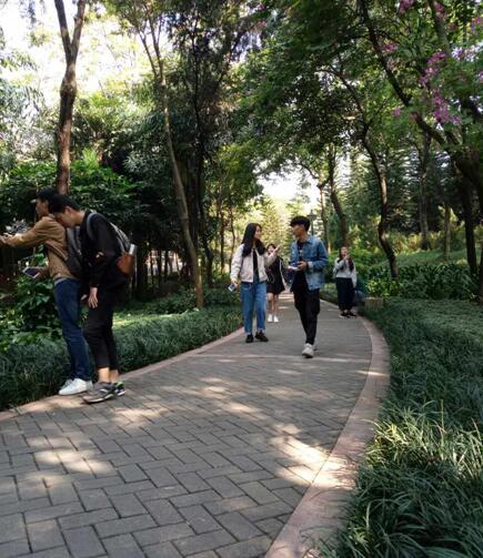 园林植物学和园林植物学考察课程是本专业新生进入高校里面的一门基础课程,在学习园林植物学的理论知识的基础下,理论与考察相结合的学习过程。2016年12月10日,16级环境艺术设计专业的两个班级学生在张玥老师的带领下,来到广州花城广场、珠江公园以及广州塔三个地点进行考察。作为刚进入环境艺术专业的学生,主要目的是通过对这三个不同地方实地参观考察,加强学生对园林景观行业的综合认识,学习环境艺术设计行业的总体发展模式,借鉴前人的智慧,积累经验,收集植物素材,拓宽视野,了解景观的基本情况及景点分布、景观规划等情况,进而转化吸收,应用于今后的专业学习中。
