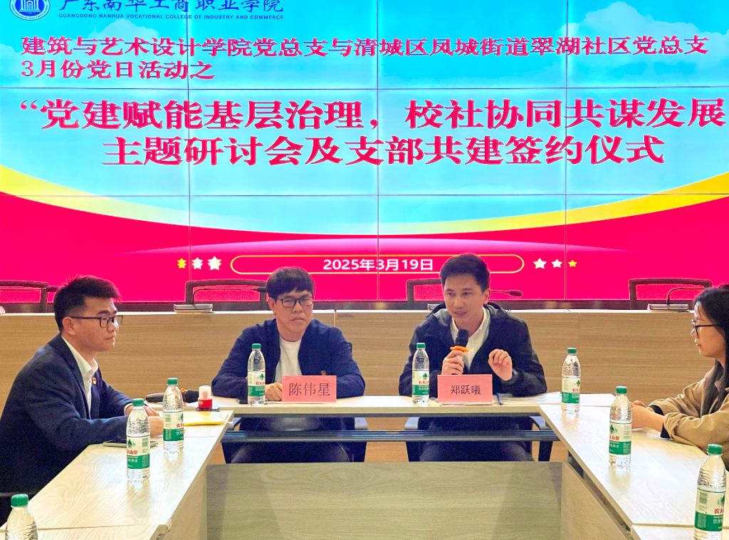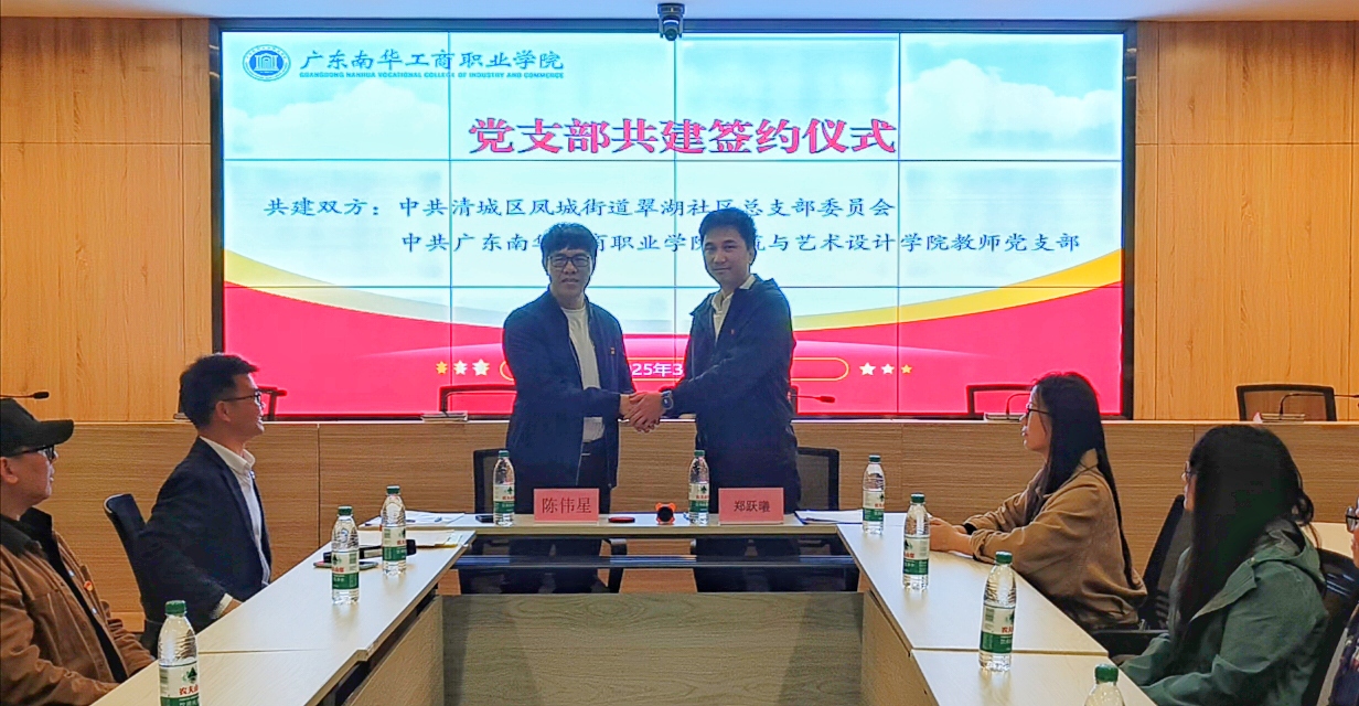 为深入贯彻落实党的二十大精神,深化基层党组织建设,推动校地协同发展,3月19日下午,建筑与艺术设计学院党总支与清城区凤城街道翠湖社区党总支在清远校区图书馆报告厅举行3月份主题党日活动暨教师党支部与翠湖社区党总支结对共建仪式。双方以“党建赋能基层治理,校社协同共谋发展”为主题,围绕资源共享、优势互补、服务民生等领域开展深度合作,共同探索党建引领基层治理的新路径。