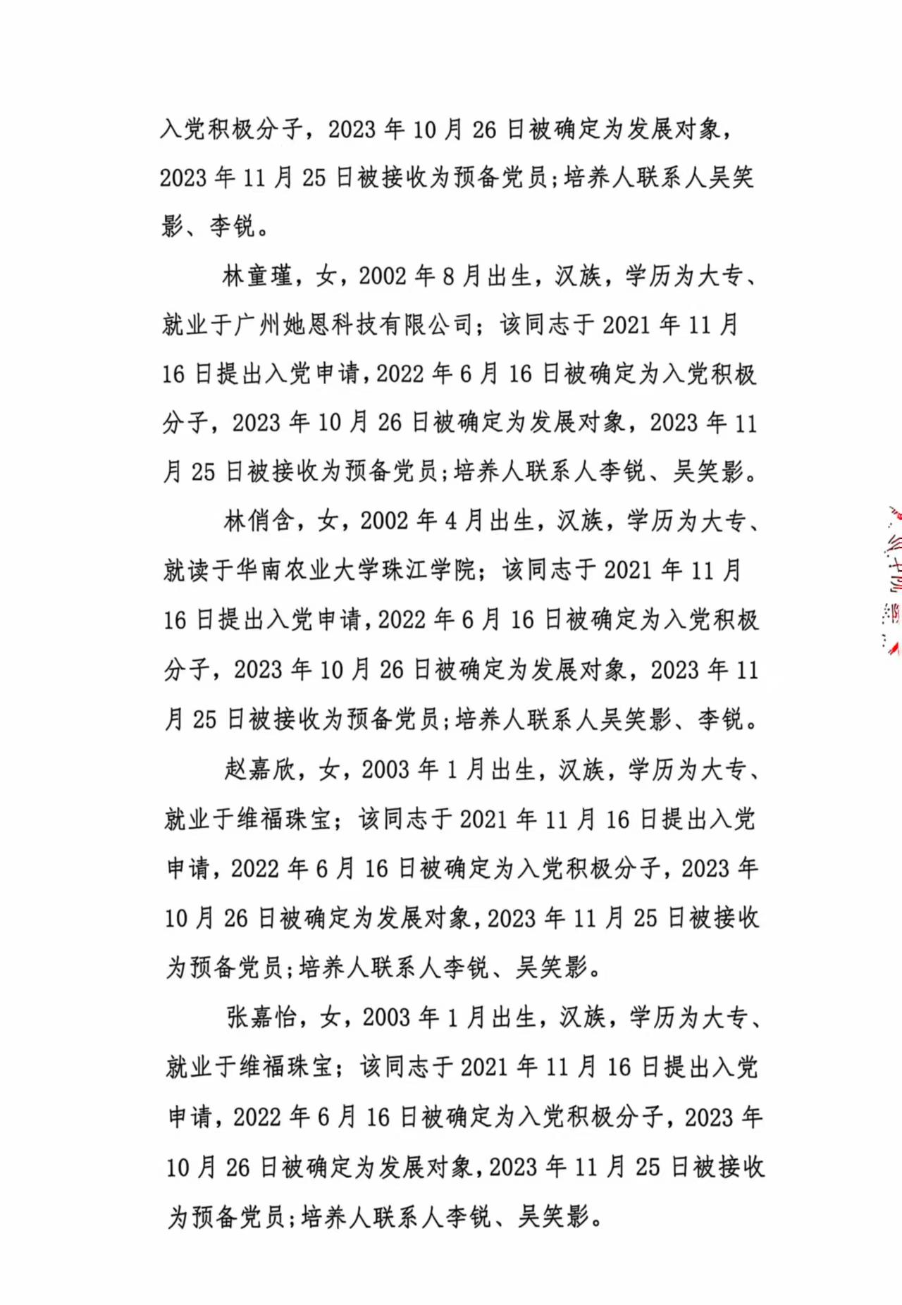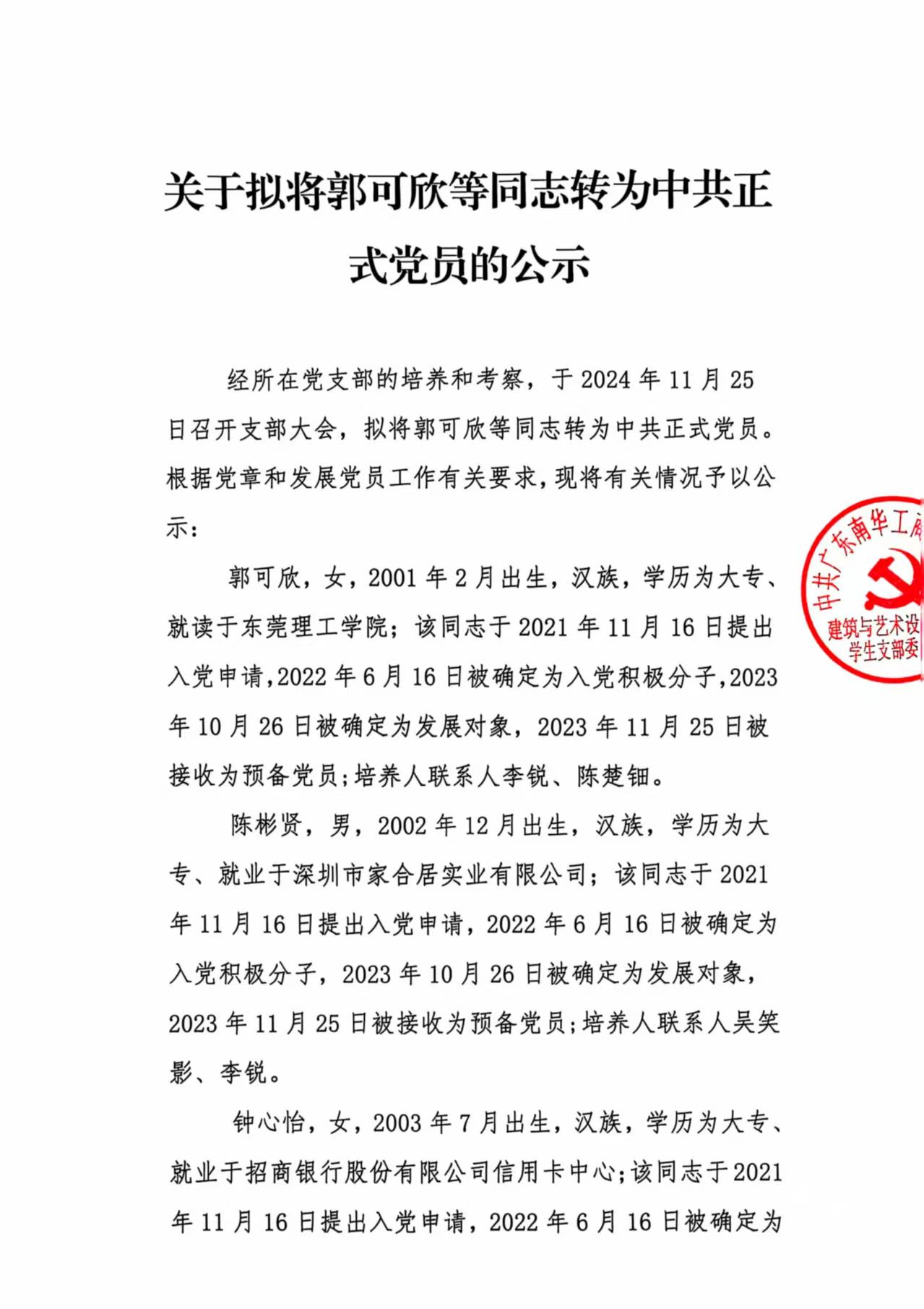 关于拟接收钟天等五名同志为中共预备党员的公示