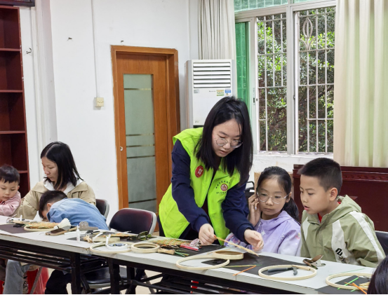 参与活动的志愿者们分工明确、各司其职。活动前期,志愿者们协助社区非遗传承人精心准备竹篾、模具等材料;活动中,志愿者分组指导社区青少年学习竹编基础技法,耐心示范穿篾、压边等步骤,在确保安全的前提下激发青少年的创造力。