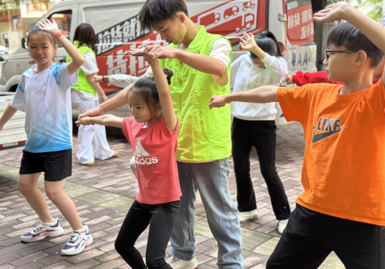 同时,志愿者们还为社区小朋友们精心制作了图文并茂的教学课件以及武术文化视频。实践教学环节结束后,大学生志愿者在翠湖社区党群服务中心给小朋们播放武术文化视频,深入讲解洪拳的历史渊源与文化内涵。孩子们聚精会神聆听,眼中充满对传统武术的好奇与兴趣。