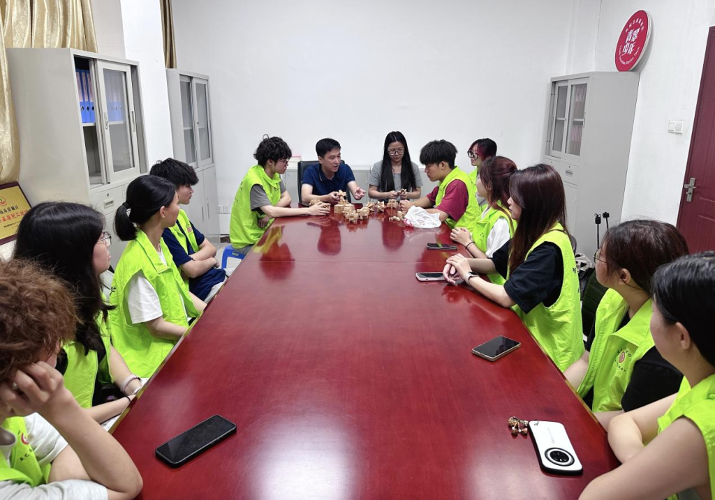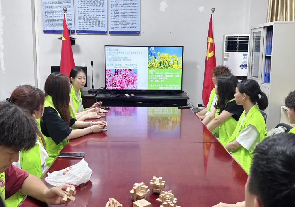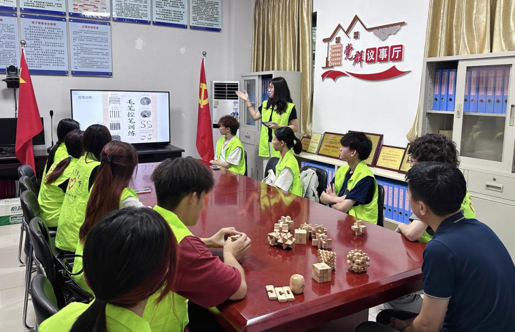 活动现场,大学生志愿者发挥专业所长,将学院专业特色融入课程设计。剪纸课上,红纸翻飞间展现非遗技艺的魅力;书画课堂泼墨挥毫,引导孩子们感悟传统美学;古建筑榫卯结构技艺体验环节,通过拼搭模型揭秘传统建筑智慧;“花语诗界漫游记”则以诗画结合的方式,带领孩子们领略自然与文学的交融之美。翠湖社区相关负责人全程参与试讲,与学院师生就课程时长、工具配备、预算规划等细节逐一对接,为后续常态化开课夯实基础。