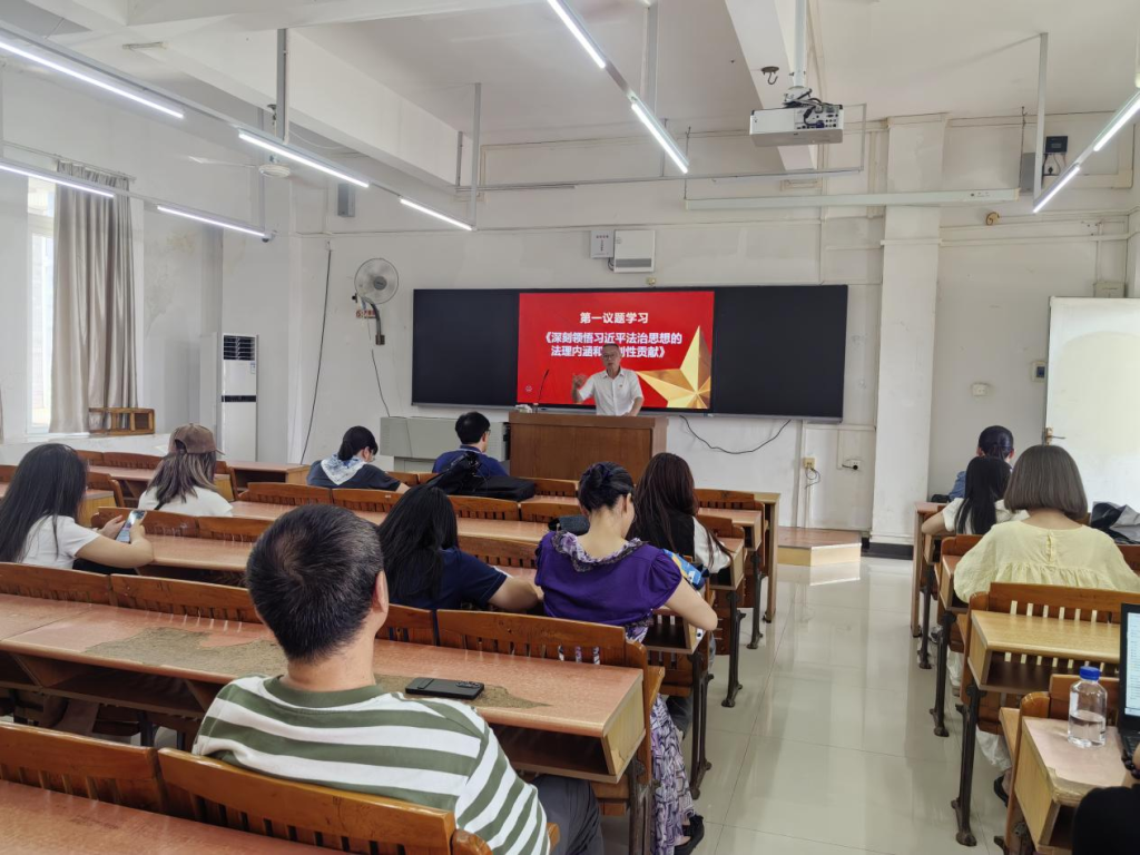 会议伊始,学院党总支书记张朝山同志带领全体党员集体学习《深刻领悟习近平法治思想的法理内涵和原创性贡献》,并对下一阶段党建与业务融合重点工作进行部署。会议强调,全体党员要坚持以习近平新时代中国特色社会主义思想为指导,落实立德树人根本任务,在专业建设、人才培养、社会服务中彰显党员担当,为学院高质量发展贡献力量。
