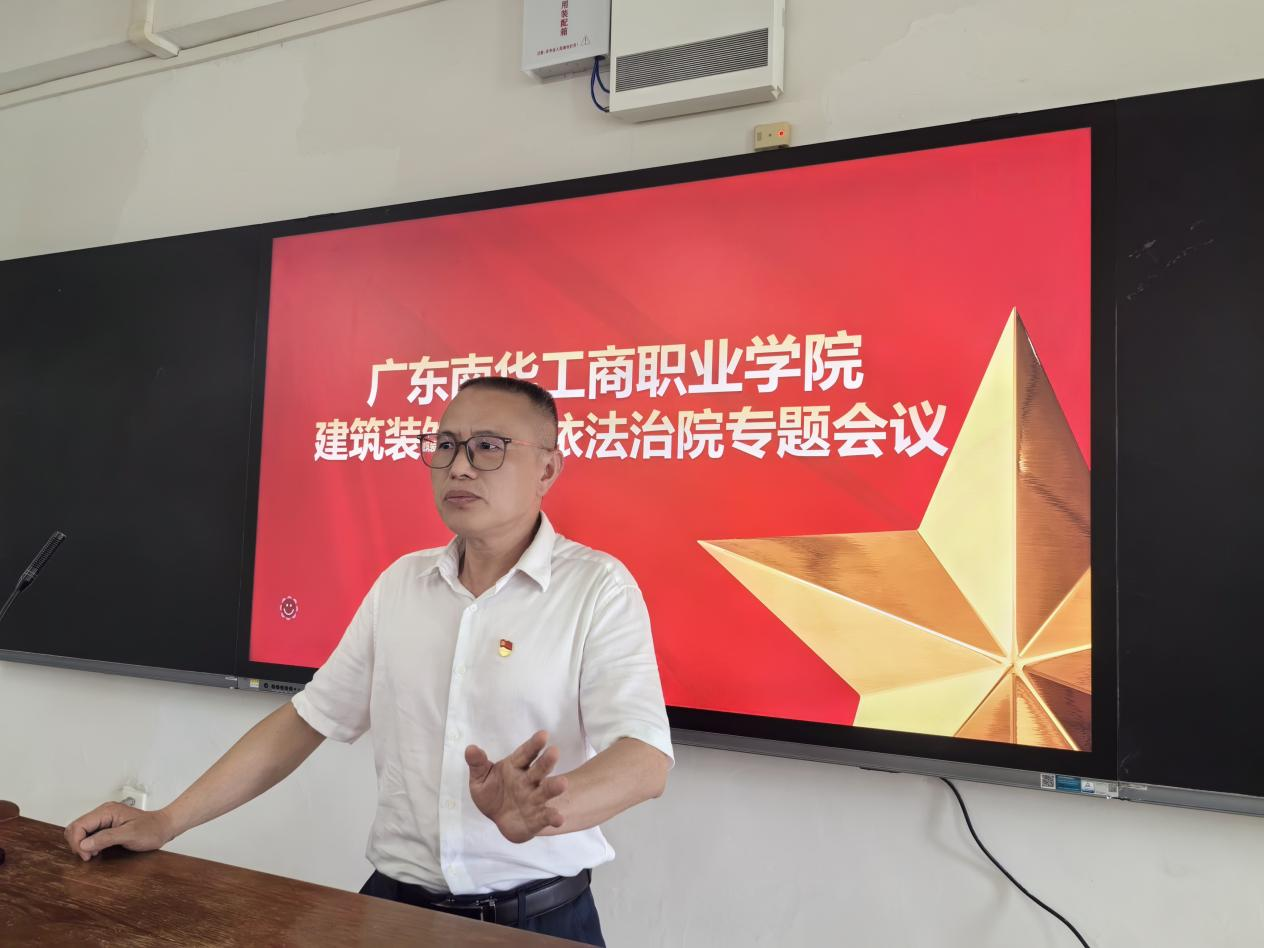 2025年6月11日,建筑装饰学院以下,简称“学院”召开依法治院专题会议,深入学习贯彻习近平法治思想,全面落实学校2025年全面从严治党工作会议精神,围绕“规范管理、依法治院”主题部署重点工作。会议由学院党总支书记张朝山主持。