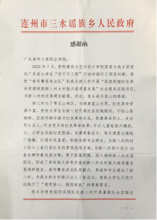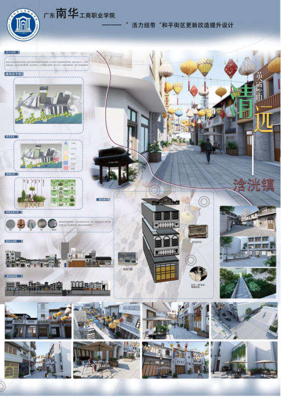 为深入推进党建工作与专业建设深度融合,服务乡村振兴战略,建筑与艺术设计学院党总支部打造“党建引领专业,助力乡村振兴”项目,以党建为统领,引导广大师生发挥专业优势在乡村振兴的伟大进程中贡献力量,建艺学院教师党支部、学生党支部积极发挥战斗堡垒作用,2023年暑假,教师党支部与清远市浛洸镇对接,组织“筑梦者突击队”赴浛洸镇和平街区开展“‘活力纽带’——设计赋能乡村振兴,和平街街区更新改造提升设计”社会实践项目,其设计方案在第三届印迹乡村创意设计大赛省级赛暨第二届粤乡印迹创意设计大赛中获得优秀奖;学生党支部与清远市连州市三水瑶族乡在广东省“百千万工程”行动上结对,组织“南华擎苍突击队”赴三水瑶族乡新八村开展“深度挖掘红色革命资源赋能新八村乡村振兴高质量发展”社会服务实践项目,其调研报告获得清远市大学生“百千万工程”行动成果展示大赛省职教城赛道决赛三等奖。