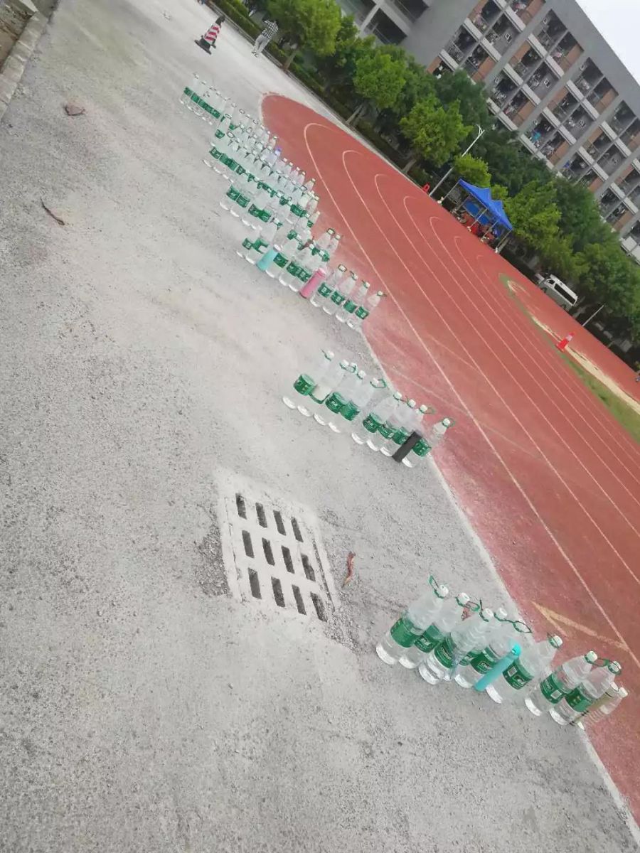 走在军训的训练场里,一列列整整齐齐的水瓶就是你们军训效果的最好证明