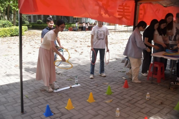 为营造积极健康的校园心理文化氛围,助力学生在艺术与互动中探索心灵成长,4月15日下午,建筑与艺术设计学院在宿舍楼3栋前举行"妙趣套圈,'圈'住美好时光"心理游园活动。本次活动通过趣味游戏、沉浸式体验和团队协作,为同学们打造了一场融合艺术性与心理关怀的春日盛宴。