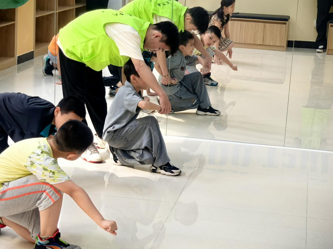 活动现场,化身为“武术指导员”的志愿者,通过分解动作、慢动作示范和易记口诀,系统性地传授“虎爪擒拿手”、“弓步劈拳”等洪拳基本招式。孩子们热情不减,在熟悉的面孔指导下认真练习,动作整齐度和参与度均显示出活动的延续效果,现场口令声与练习声此起彼伏。