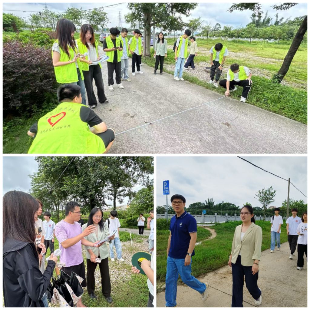 这支充满活力的突击队,汇聚了学院环艺专业主任刘隽华、辅导员周敏,以及来自工程造价、建设工程管理、环境艺术设计等多个专业的优秀学生代表。师生们顶着炎炎烈日,深入白沙村公园规划区域,将课堂所学搬到了乡村振兴的第一线。