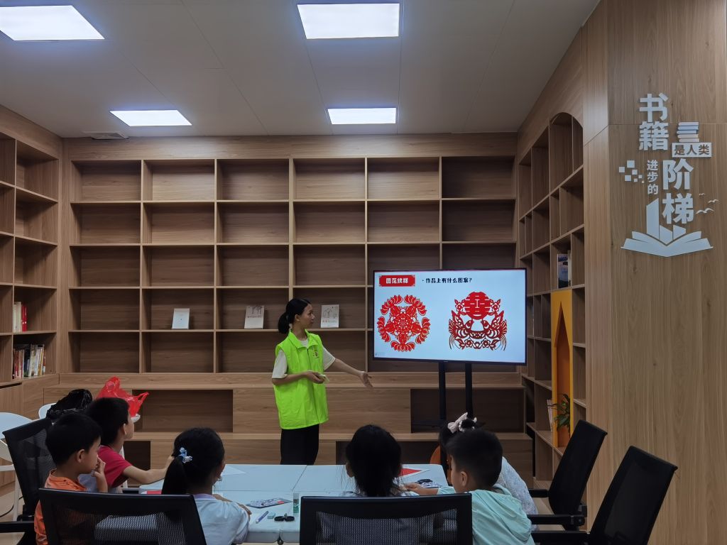 活动伊始,大学生志愿者通过生动的讲解和图文展示,向青少年们介绍了剪纸艺术的历史渊源、不同地域的风格特点及其在民俗文化中的重要地位。讲解涵盖了春节窗花、婚庆喜花等应用场景,让青少年们理解了剪纸所承载的美好祝福与寓意,激发了他们对这一传统技艺的兴趣。