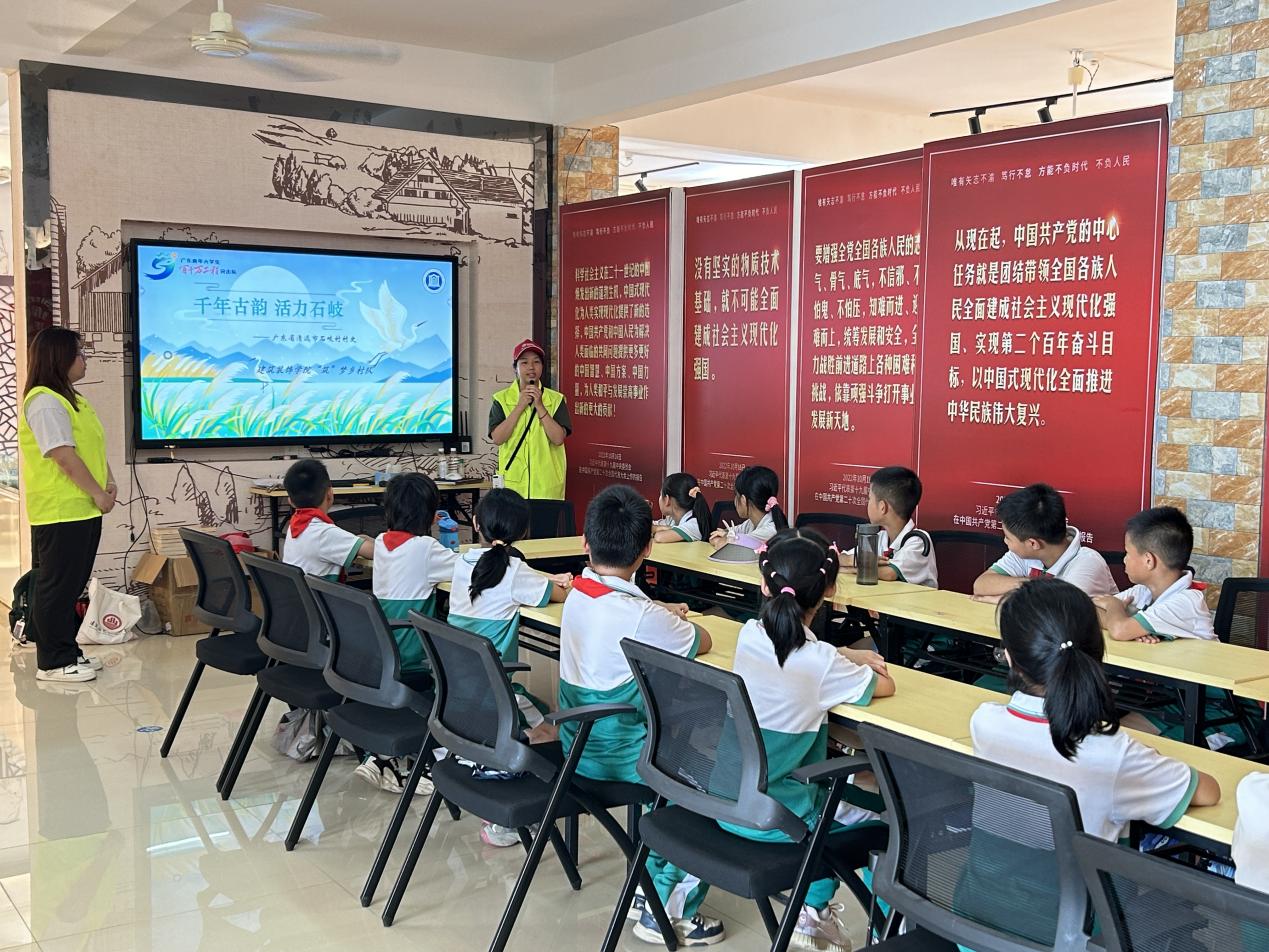 探寻家乡史,自信油然生:“村史科普”环节,突击队员们引导孩子们一起追溯石岐村的过往,讲述村名的由来、老一辈的奋斗故事和本地的风土人情。随后的“讲解实务”训练,鼓励孩子们尝试做“小小村史讲解员”。孩子们在了解家乡历史的过程中,自豪感和归属感显著提升。