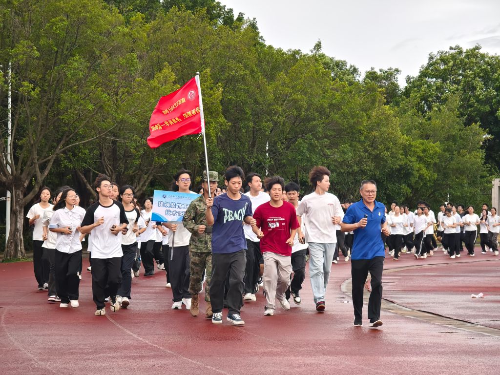 2025年9月8日早上,建筑装饰学院在足球场举行新学期升国旗仪式暨新生开学典礼、晨跑启动仪式。学院党总支书记张朝山、学院院长陈伟星、学院专业主任、全体带班辅导员及2025级新生齐聚于此,用奔跑的姿态、奋进的号角开启新学期的崭新篇章。
