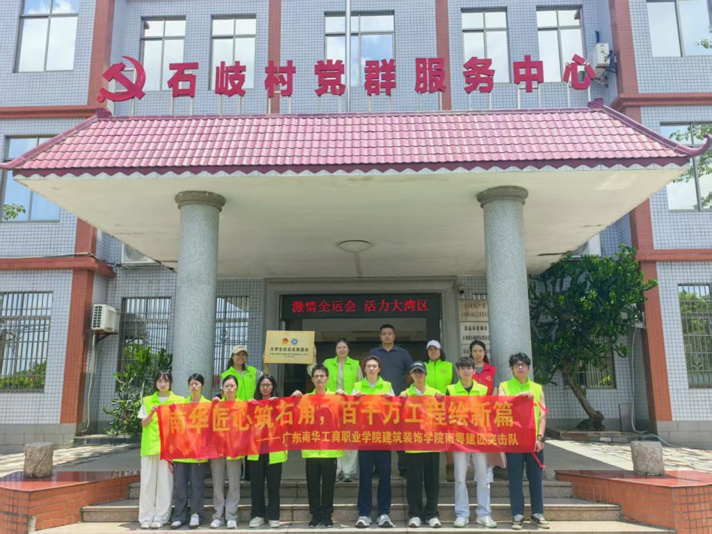 6月23日上午,广东南华工商职业学院建筑装饰学院环境艺术设计专业的10名学子,在专业教师陈亚美、刘妙娟、刘晓的带领下,带着卷尺、图纸和满腔热情,踏入了清远市清城区石角镇石岐村,开启了为期14天的“百千万工程”暑期社会实践活动。
