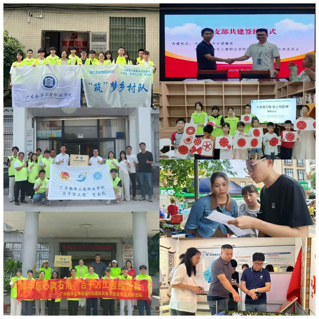 为深入贯彻落实广东省“百县千镇万村高质量发展工程”决策部署,充分发挥党建示范引领和专业服务社会功能。2025年暑期,建筑装饰学院党总支组织教师党支部、学生党支部党员及入党积极分子,组建多支“百千万工程”突击队,分赴珠海市斗门区、阳春市石望镇、湛江市徐闻县、清远市石角镇及清远市清城区翠湖社区等地,扎实开展“青春聚力‘百千万’”主题党日活动暨暑期社会实践活动。期间,学院与上述单位签署党建共建协议,并挂牌成立大学生社会实践基地,有效推动校地合作深度融合,为服务乡村振兴战略注入持续动能。