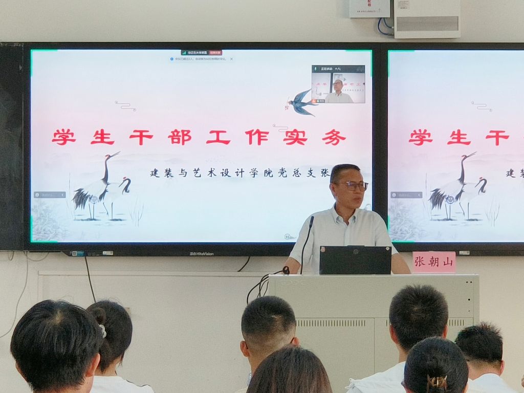 建筑与艺术设计学院党总支书记张朝山以《学生干部工作实务》为题,为“青马班”学生干部讲授“开班第一课”。他从学生干部角色定位、学生干部五个作用、学生干部五个榜样、学生干部的素质能力、学生干部工作意义、学生干部工作总目标、学生干部工作基本原则、学生干部工作意识、学生干部团队建设、礼仪与口才等学生干部工作实务方面深刻且生动地讲述了如何做好一名优秀的学生干部;希望广大青年要坚定马克思主义信仰,要牢记初心使命、增强服务意识,要肯于敢于实践,在实践中长知识、增才干、强本领、做贡献,做新时代的追光者和发光者。