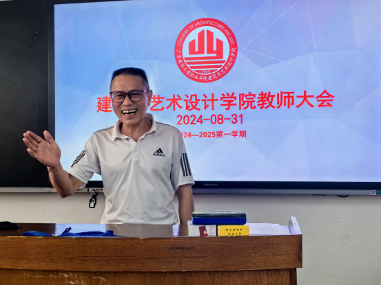 2024年8月31日下午,建筑与艺术设计学院在清远校区教学楼108召开2024-2025年秋季学期全体教职工大会,部署新学期各项工作。全体教职工参加会议,会议由院长陈伟星主持。
