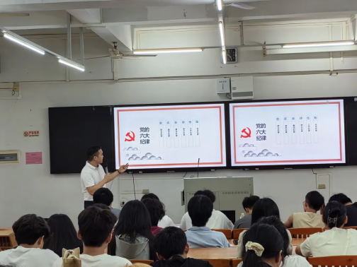 王明利系统讲解了《中国共产党纪律处分条例》中关于政治纪律、组织纪律、廉洁纪律、群众纪律、工作纪律和生活纪律的有关规定,提出这些规定不仅是对党员行为的规范,更是对党员思想和行为的引导,使同学们深刻认识到,作为一名学生党员、入党积极分子,在思想上、政治上、行动上与党中央保持高度一致,坚决维护党的团结统一,就是要用党的纪律严格要求自己、规范自己的行为举止,在同学中起到模范带头作用。
