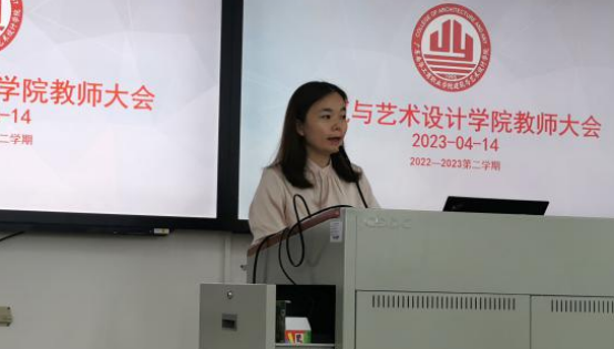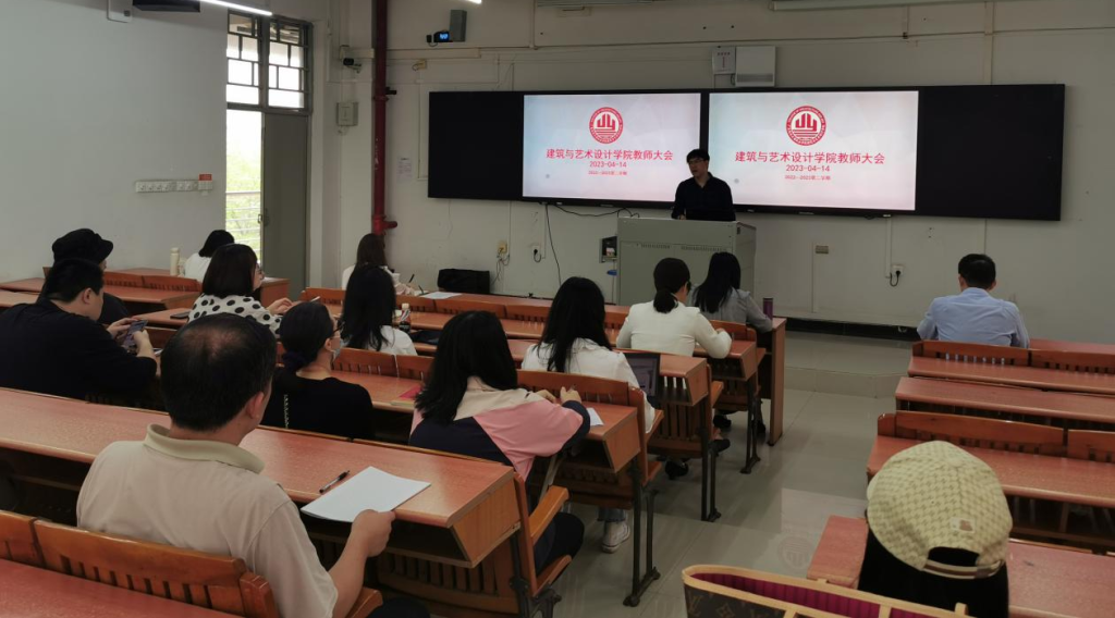2023年4月14日陈伟星院长主持召开建筑与艺术设计学院2023年4月教职工大会,学院党总支常务副书记梁萍萍同志、副书记胡娟同志出席会议,学院全体教职工参加会议。