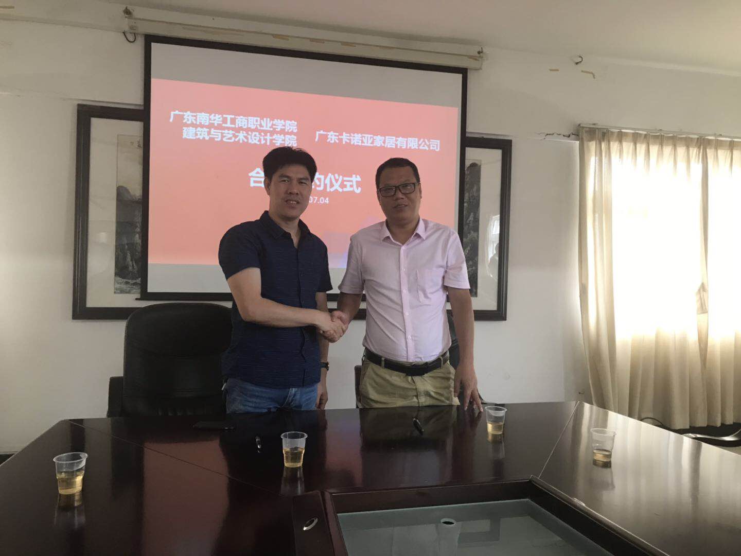 在粤港澳大湾区建设规划背景下,为贯彻落实党的十九大精神,响应国务院办公厅印发的《关于深化产教融合的若干意见》、及《国家职业教育改革实施方案》以及《广东省教育发展“十三五”规划(2016-2020)》职业教育精神,深化校企合作、实现产教融合,大力推进教育教学改革,拓宽创新人才培养模式,全面提高人才培养质量和办学水平,培养、输送行业企业急需的高素质高技能专业人才,经过近半年的交流与探讨,建艺学院与广东卡诺亚家居有限公司达成“现代学徒制”合作共识,以建艺学院产品艺术设计专业和家具设计与制造专业为主,与企业开展校企协同育人的“现代学徒制”专业人才培养模式实践,于2019年7月4日在我校签订校企合作战略协议。