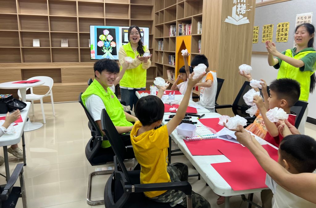 实践环节是本次活动的亮点。志愿者精心设计了利用废弃纸巾制作康乃馨的手工课程,巧妙融入环保理念。在志愿者的耐心指导下,青少年们通过折叠、扎紧、涂色等步骤,将废弃纸巾变废为宝,制作成一朵朵色彩缤纷的康乃馨。这一过程不仅锻炼了他们的动手能力和创造力,更深刻体会到资源再利用的价值。
