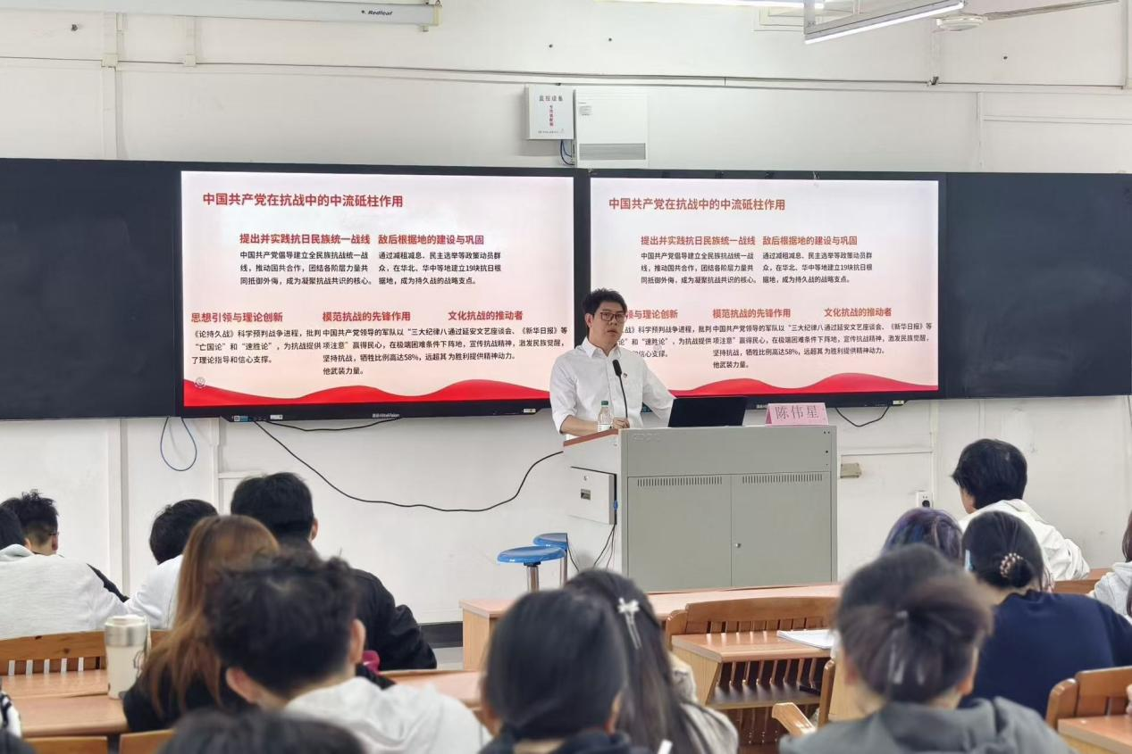 为深入贯彻习近平总书记关于加强和改进学校思想政治教育工作的重要指示精神,积极落实相关决策部署,2025年10月23日上午,广东南华工商职业学院建筑装饰学院院长陈伟星以“用伟大抗战精神教育引导新时代青年挺膺担当”为主题,开展了一堂主题鲜明、内涵丰富的思政课程。此举旨在引导青年学子深入学习抗战精神,明确新时代青年的历史使命和责任担当。