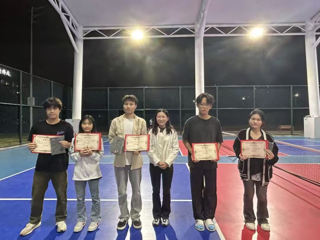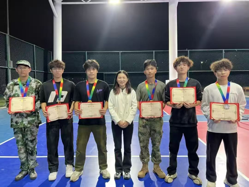 匹克球是一项用球拍在硬质场地上击打穿孔塑料球的运动,它集网球、羽毛球和乒乓球于一体,设备简单,易于上手。因此,这种快速的进步和成功的体验,能极大地提升个人的自我效能感和自信心,这种积极的心态也会蔓延到生活中。风靡全球的匹克球,不仅是身体锻炼,更是心灵的“减压阀”。心理学家和长期参与者指出,这项运动在促进社交联结、释放压力、提升幸福感方面展现出显著效果。最终在大家的欢呼声中见证了这个光辉时刻,由梁文辉、刘嘉炜凭借着默契的配合赢得冠军,庄圳钦、林志勇为亚军,卢俊轩、徐镱庆为季军, 石浩、高晓彤、梁文辉、韦程、陈炜晴为优秀裁判,由吴笑影老师在热烈的掌声中为获奖选手颁发荣誉证书和奖牌。