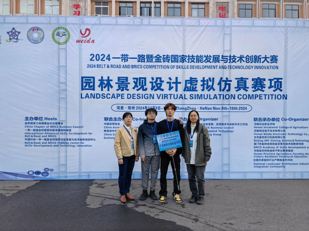 11月8日-11月10日,2024一带一路暨金砖国家技能发展与技术创新大赛之园林景观设计虚拟仿真赛项国内赛决赛(高职组)在河南郑州举行,全国各省职业院校三百多支队伍同台竞技、角逐激烈。我校建艺学子蒋文杰、罗英权两位参赛选手获得了国赛三等奖,成功实现了我校在此赛项参赛成果上首次突破。