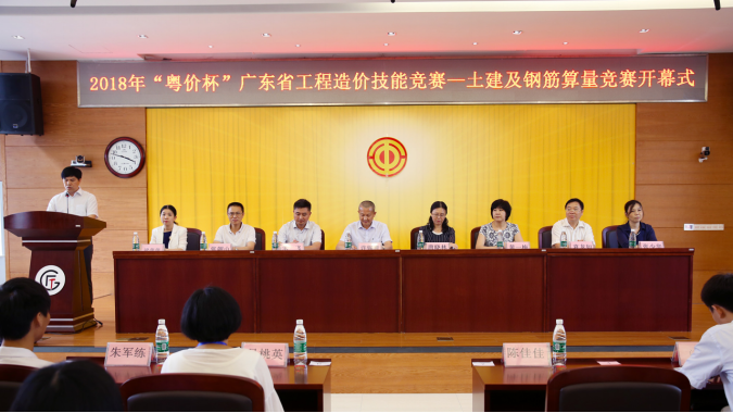 2018年6月9日下午“粤价杯”工程造价技能竞赛正式拉开帷幕,报到现场十分热烈。下午3点50在广东南华工商职业学院天河校区行政楼4楼举行了开幕式。开幕式由广东南华工商职业学院建筑与艺术设计学院陈伟星院长主持。首先由广东省工程造价协会许锡雁秘书长致辞,他强调要培养良好的职业道德,成为学习型、知识型、创新型、复合型的技能人才,希望参赛人员坚持努力、进步、团结、交流的宗旨,赛出风格,赛出水平!广东南华工商职业学院唐晓林副校长致了欢迎辞,热烈欢迎了每位前来参赛的教师和学生代表以及嘉宾,广联达朱飞总经理表示要让校园大赛成为职业的起点,梦想的舞台!之后裁判代表进行了宣誓,保证了比赛的公平性、公开性、公正性。最后由指导教师代表——华南理工大学工程管理系副主任闫辉博士发言,表达了对学生的信心,期望大家都能取得满意的成绩。