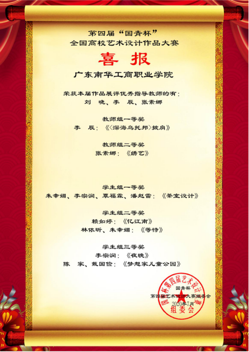 由中国人生科学学会主办(教育部主管、在民政部登记注册的国家一级学术学会,同中国教育学会、中国教育科学研究院同级别的),中国人生科学学会艺术与设计教育分会承办主办的第四届国青杯设计大赛,于2020年7月正式出炉比赛结果。