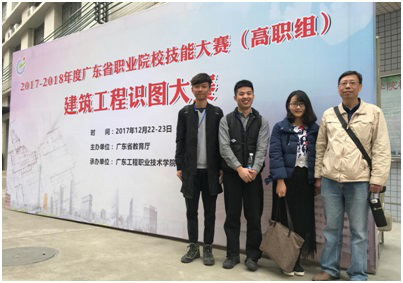 广东省教育厅主办的“建筑工程识图”知识竞赛,于2017年12月22-23日在广东工程职业技术学院进行。我校选派了15级工程造价专业学生詹剑儒,16级工程造价专业学生刘欢欢组成1支队伍参加了比赛。