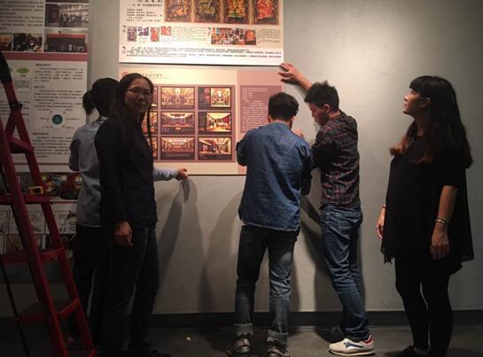 图一 我院专业教师彭晓丹 刘隽华带领学生布展