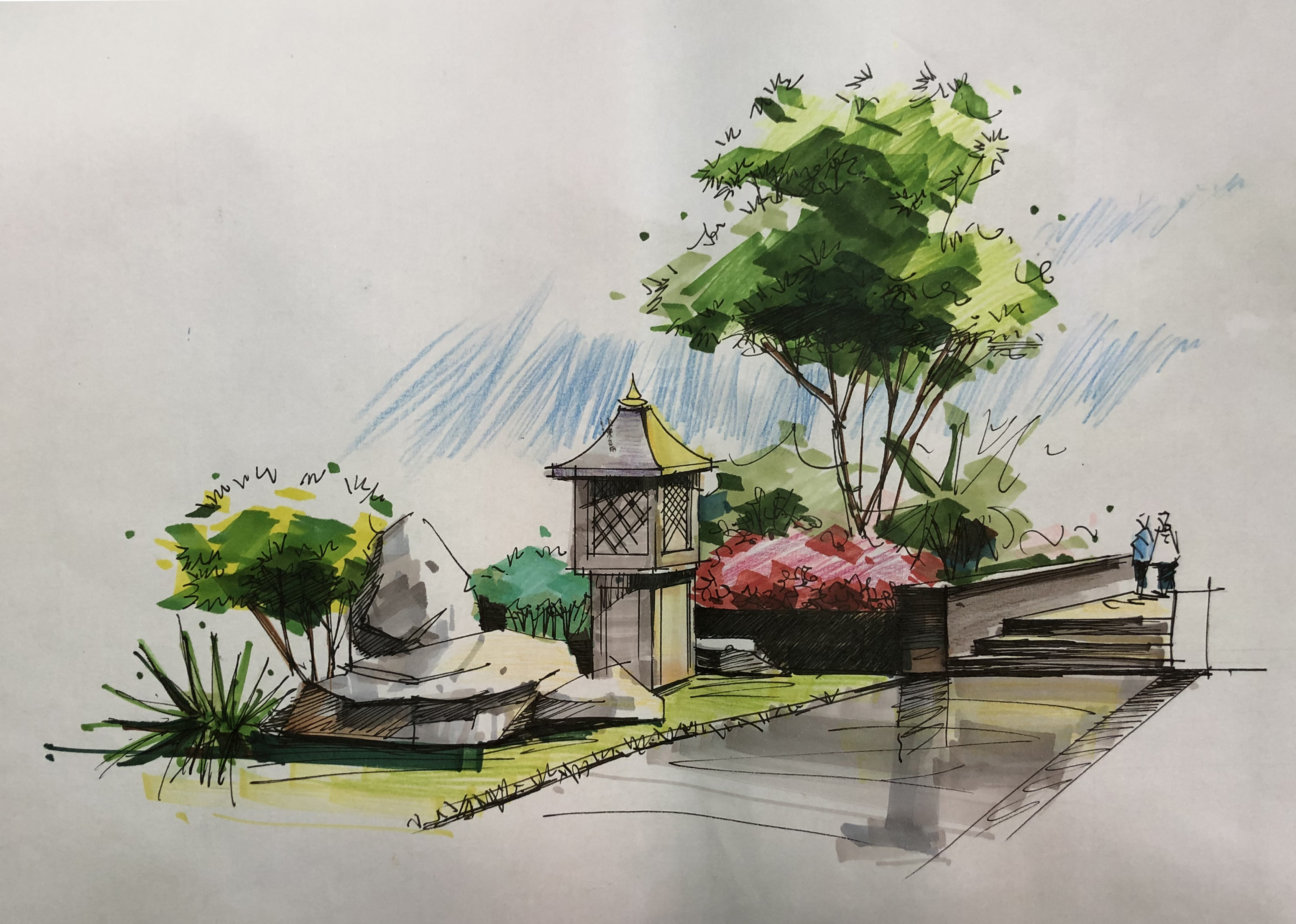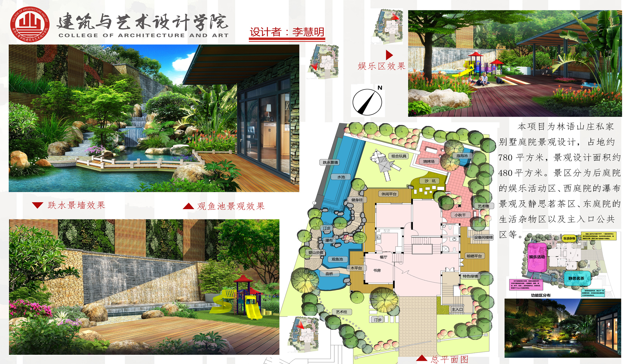 2、园林规划设计,可熟练完成小庭院绿地和城市各类公园的方案设计并可在图纸上表达完整,能够根据设计方案编制设计说明。