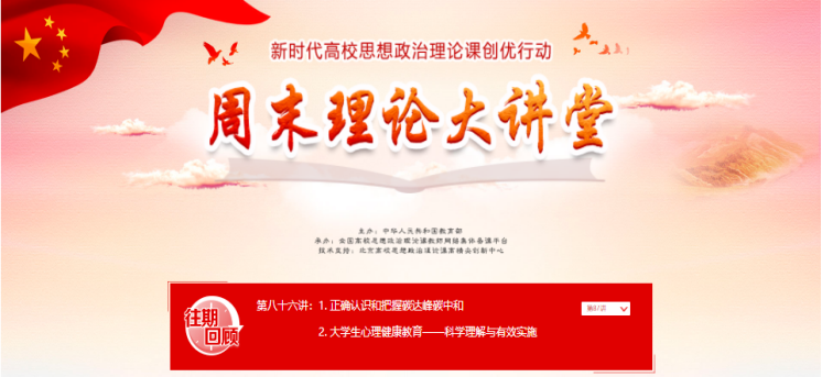 全体教师共同观看了2022年春季学期全国思想政治理论课教师“周末理论大讲堂”第八十七讲的直播。国家发展改革委环资司碳达峰碳中和推进处王静波处长和北京师范大学伍新春教授分别作了“正确认识和把握碳达峰碳中和”、“大学生心理健康教育——科学理解与有效实施”的报告。王静波处长从深刻领会实现碳中和目标的重要意义、充分认识实现碳达峰碳中和目标的紧迫性、积极稳妥做好碳达峰碳中和工作等方面进行了详细介绍,帮助各位更为全面地了解了“双碳”工作。随后,伍新春教授从学生心理健康的基本结构、衡量标准、教育模式以及观念转型等方面出发,强调必须重视大学生心理健康教育问题,对老师们做好学生心理健康教育和疏导工作提供了较大帮助。