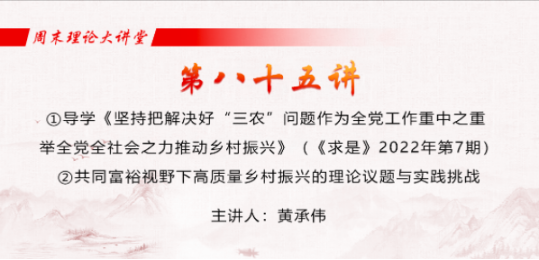 全体教师共同观看了2022年春季学期全国思想政治理论课教师“周末理论大讲堂”第八十五讲的直播。现任国家乡村振兴局中国扶贫发展中心主任、北京大学贫困治理研究中心主任黄承伟研究员导学《坚持把解决好“三农”问题作为全党工作重中之重 举全党全社会之力推动乡村振兴》(《求是》2022年第7期),并作了题为“共同富裕视野下高质量乡村振兴的理论议题与实践挑战”的报告。黄承伟研究员首先带领大家回顾了习近平总书记在党的十九大以来关于乡村振兴的系列论述,这些论述不仅蕴含了关于乡村发展的规律性认识,也包含了大量关于农业农村现代化、城乡融合发展的理论创新,这正是我们党运用马克思主义基本原理指导走中国特色社会主义乡村振兴道路的重大成果。另一方面,中华文明根植于农耕文化,乡村是中华文明的基本载体,延续了许多农耕文明。繁荣发展乡村文化是乡村振兴的重要内涵,核心就是传承发展中华优秀传统文化,这就为马克思主义同中华优秀传统文化相结合提供了文化空间。黄承伟研究员还对脱贫攻坚、乡村振兴、共同富裕三者的关系展开讨论,指出共同富裕是社会主义的本质要求,是中国共产党的初心和使命,也是中国全面开启社会主义现代化国家建设新征程治国理政的基本方略。要实现共同富裕的目标,仅靠农业现代化是不够的,农业农村现代化是迈向共同富裕的要求。因此,高质量乡村振兴既是共同富裕的重要内容,也是推进共同富裕的重要路径。
