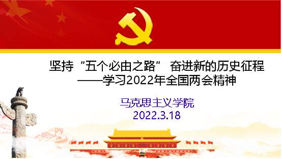 3月18日,马克思主义学院召开全体会议,组织开展 2022年全国“两会”精神专题学习暨学习贯彻习近平总书记在学校思想政治理论课教师座谈会上的重要讲话精神—重温“3.18”三周年。马克思主义学院刘婷副院长主持本次学习活动。