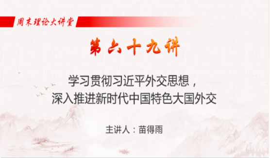 马克主义学院全体教师首先共同观看了2021年秋季学期全国思想政治理论课教师“周末理论大讲堂”第六十九讲的直播。外交部政策规划司苗得雨司长作了题为“学习贯彻习近平外交思想,深入推进新时代中国特色大国外交”的报告。苗得雨司长从世界正处于百年未有之大变局和中国特色社会主义进入新时代是习近平外交思想的时代背景,“十个坚持”是习近平外交思想的总体框架和核心要义,科学性、时代性和先进性是习近平外交思想突出的理论品格,推动我国外部环境实现历史性改善、捍卫国家主权安全取得历史性进展、助力我国对外合作实现历史性跨越和推动我国国际地位实现历史性提升是习近平外交思想的光辉实践等方面进行了精彩讲解。面对风云激荡的国际形势,习近平总书记以伟大战略家的远见卓识,准确把握人类社会发展规律,在外交领域提出了一系列富有中国特色、体现时代精神、引领人类进步潮流的新理念新主张新倡议,形成和确立了习近平外交思想,是习近平新时代中国特色社会主义思想的有机组成,是21世纪马克思主义在外交领域的最新成果,为进入新时代的中国外交指明了前进方向,提供了根本遵循。