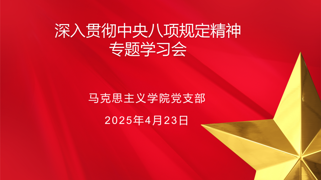 为深入学习贯彻中央八项规定精神,根据学校党委的统一部署,马克思主义学院党支部积极行动,在之前启动部署学习教育的基础上,4月23日,马克思主义学院党支部召开深入贯彻中央八项规定精神专题学习会,会议由党支部书记刘婷主持,学院全体教师参加会议。