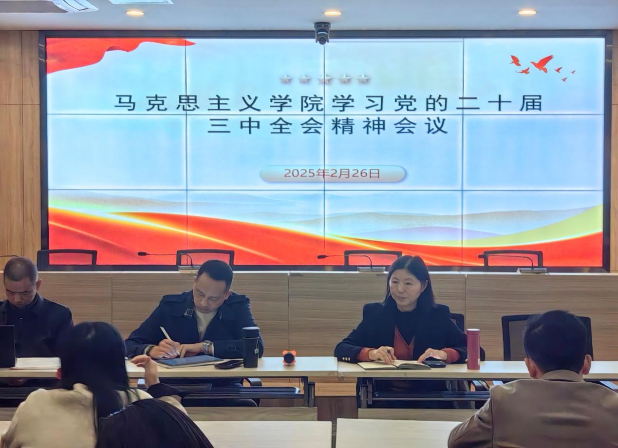 2025年2月26日下午,马克思主义学院在清远校区图书馆一楼报告厅召开“学习贯彻党的二十届三中全会精神,我在马院新作为”专题会议。会议由刘婷副院长主持。