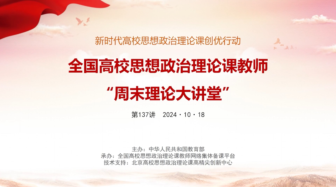 2024年10月18日下午,马克思主义学院组织全体教师观看全国思想政治理论课教师“周末理论大讲堂”第137讲的网络直播课。
