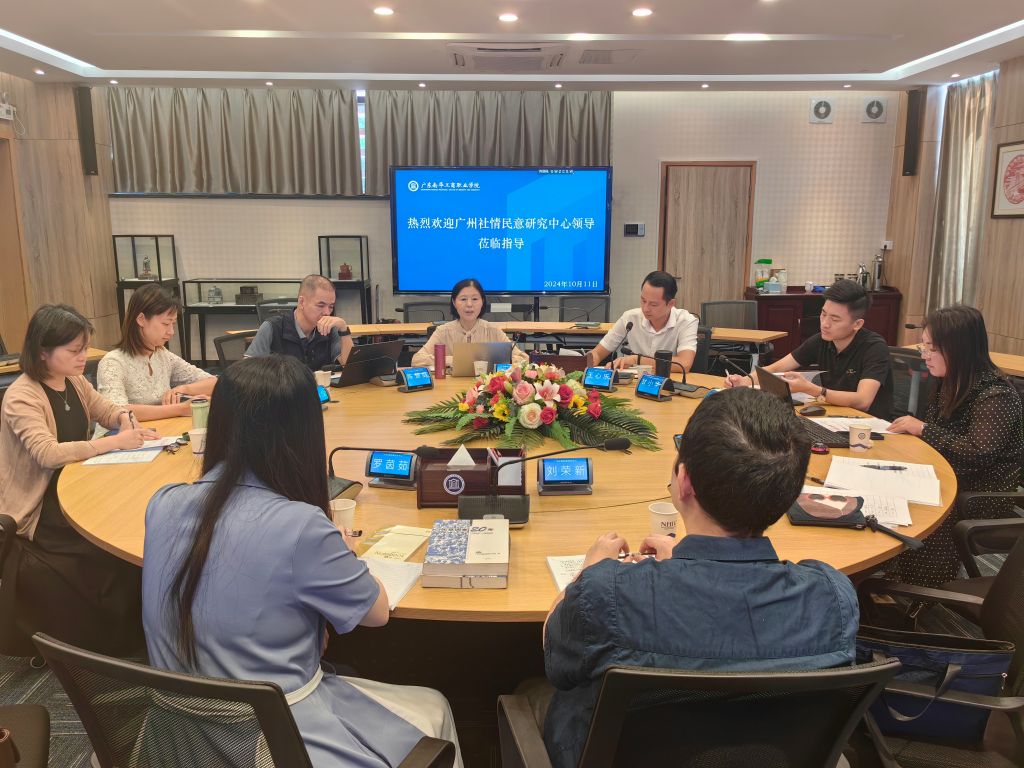 10月11日,广州社情民意研究中心刘荣新总干事、罗茵茹副主任来我院展开调研交流活动。学院刘婷副院长、王心乐副院长接待了中心领导刘荣新一行,学院党政联席会其他成员参加了本次交流活动。