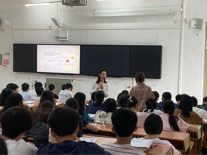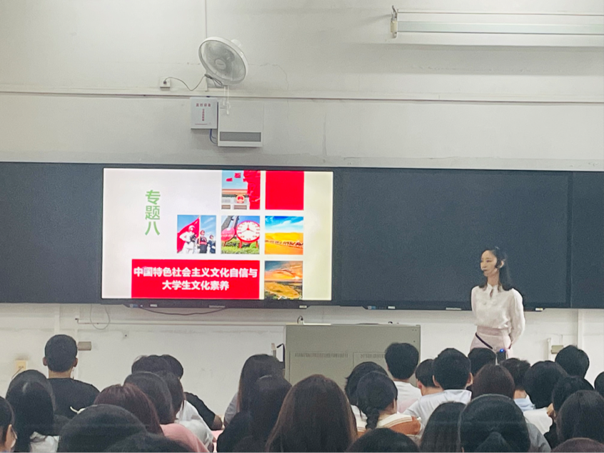 5月9日上午,马克思主义学院在23药品2、3班和23云计算2班开展主题为“中国特色社会主义文化自信与大学生文化素养”公开课展示活动,课程由谭靖仪老师讲授。活动加强思政课教师队伍建设、提升思政课教师教学水平、增进教学交流。
