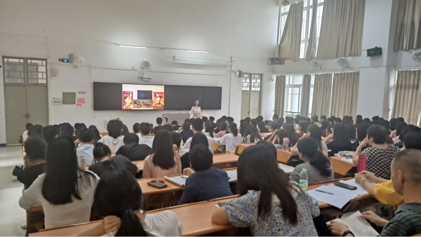 课程以学生为主体,由两组学生小组分享介绍广府文化和潮汕文化,再由谭靖仪以影视作品《花木兰》《功夫熊猫》导入引出“推进文化自信自强,铸就社会主义文化新辉煌”课程目标,讲授文化自信的内容之一——传承中华优秀传统文化,从中国的文化符号、文创产业、国家宝藏、中国精神等方面,结合自身体验通过生动鲜活的案例故事和视频全面阐述如何坚定文化自信、讲好中国故事、提高国家文化软实力,引导学生弘扬中华文化、增强文化自信自强。谭靖仪的课程框架明确、环节紧凑、生动有趣,课堂互动气氛热烈,充分调动学生积极性,通过丰富的视频、案例等突破教学重难点,达成教学目标,提高思政课的实效性和针对性。