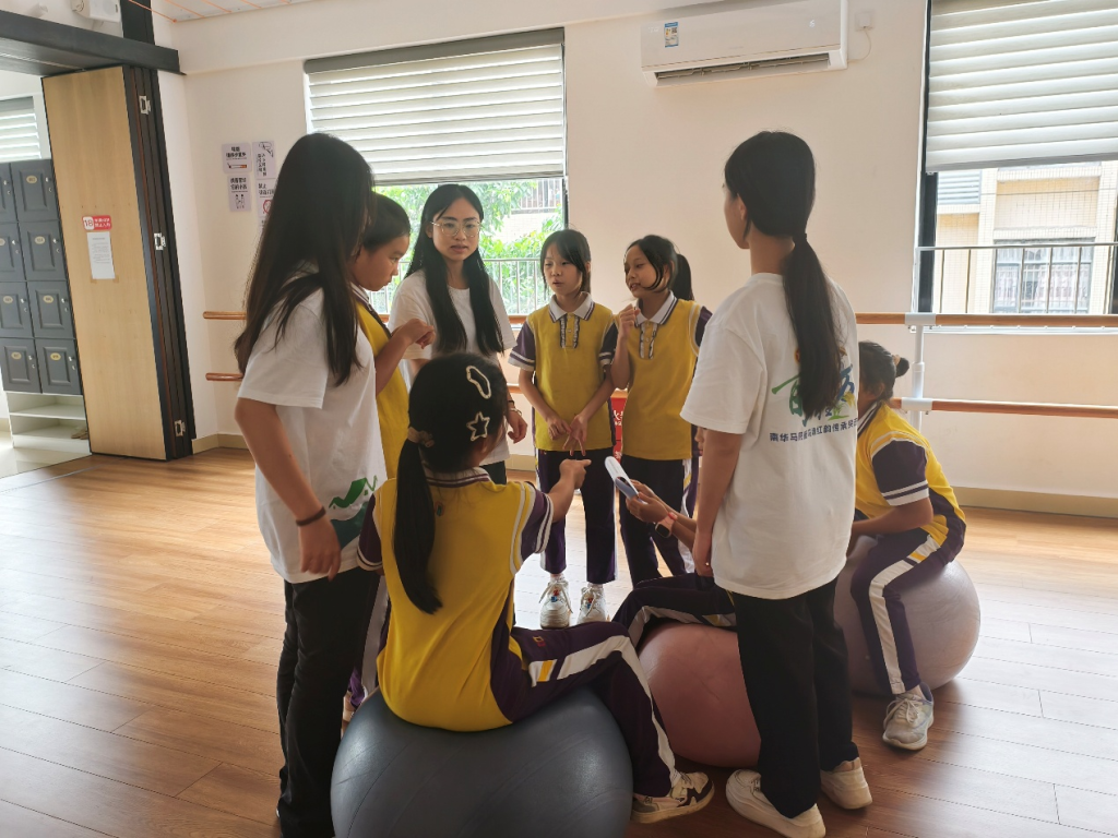 当晨光微露,新马墩村的故事已悄然开启。队员们化身红色文化传播使者,带领村里的儿童一同学习村史讲解。他们通过玩游戏的方式与小朋友们进行台词训练,用谐音字替代难记的字,降低记忆难度。其后,队员们先上场模拟演示,再让小朋友进行模仿,孩子们认真专注,克服拗口台词,模仿标准动作,声情并茂讲述,让村史更加鲜活生动。