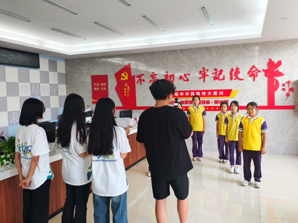 在进入正式拍摄阶段时,小小讲解员们在大哥哥大姐姐们的鼓励下,调整情绪,精神饱满地投入到村史讲解录制。实践队摄影师调整机位,捕捉孩子们流畅讲述村史的自信风貌,定格红色传承的青春剪影。培训间隙,队员们给小朋友们分享新马墩村的移民史与革命故事,让红色文化在童心中生根发芽,孩子们立志成为村史 “传声筒”,为家乡的文化传承注入新鲜血液。