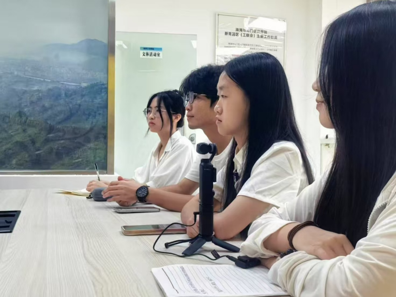 7月4日下午,在学校学生工作处副处长、驻斗门区服务队副队长李小宁的带领下,实践队师生前往新青工友驿站,与全国五一劳动奖章获得者、珠海工匠、第十届珠海市人大代表郭友兵工程师进行面对面访谈。