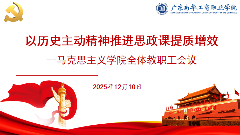 12月10日,马克思主义学院召开全体教职工会议,传达学习党委理论学习中心组(扩大)会议精神,部署学院下一阶段重点工作。全体教职工参会。