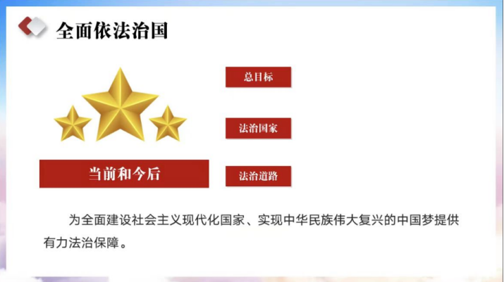 党的二十大报告指出,必须更好发挥法治固根本、稳预期、利长远的保障作用,在法治轨道上全面建设社会主义现代化国家。学院王心乐副院长从全面依法治国的角度,展开系列备课会第七讲的内容。王心乐副院长说,认识全面依法治国首先要深刻把握“中国式法治现代化”的丰富意涵。中国式法治现代化根植于“中国特色”,承载着中国特色社会主义法治道路的理论根脉,是深耕厚植于中国国情的现代化法治新道路;中国式法治现代化应适应“现代化进程”,习近平总书记强调,“一个现代化国家必然是法治国家”,并指出“纵观世界近现代史,凡是顺利实现现代化的国家,没有一个不是较好解决了法治和人治问题的”,这一论断深刻地揭示了中国式法治现代化必须适应“现代化进程”;中国式法治现代化是中国式现代化的“制度保障”。