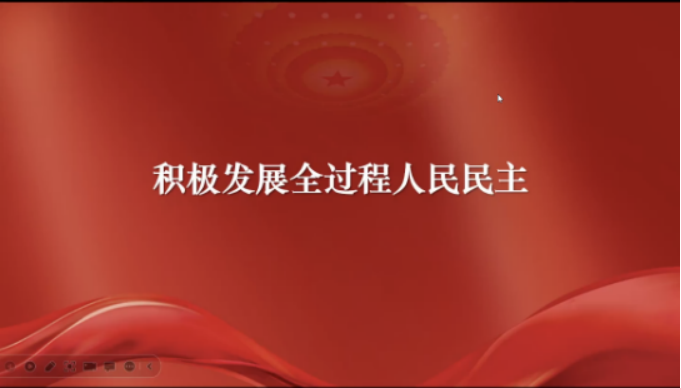 “全过程人民民主是社会主义民主政治的本质属性,是最广泛、最真实、最管用的民主。”党的二十大报告就发展全过程人民民主、保障人民当家作主作出重要部署。概论教研室黄彦宁老师围绕“全过程人民民主”这一主题展开系列备课会第六讲的内容。黄彦宁老师强调,实现民主有多种方式,不可能千篇一律。中国共产党在领导人民追求现代化目标的过程中,立足国情,坚持把马克思主义基本原理同中国具体实际相结合、同中华优秀传统文化相结合,把民主发展与现代化探索相结合,在民主的全过程中体现并保障人民当家作主的权利,走出了一条中国式民主发展的创新之路。全过程人民民主是我们党坚持以人民为中心、坚持从实际出发,带领人民在中国式现代化实践中探索开创的、真正适合中国国情的民主形式。